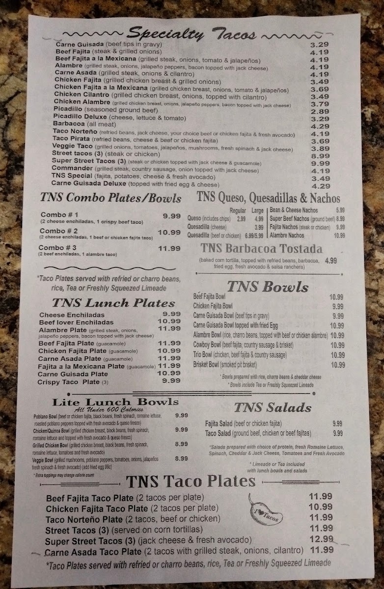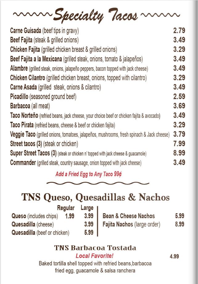The café specializes in classic Mexican fare, impressively showcasing an array of dishes that cater to both seasoned taco lovers and those new to the genre. With a menu bursting with enticing options, consider starting your day with the TNS Lite, a healthy lean omelette filled with grilled onions, fresh tomatoes, and vibrant jalapeño peppers, all crowned with luscious Monterrey Jack cheese for just $9.99. For those craving more robust flavors, the Protein Plate Deluxe ($13.59) combines scrambled eggs with savory beef or chicken fajitas and is perfectly complemented by a creamy side of fresh guacamole.